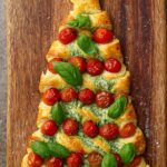 I always love finishing this appetizer with fresh basil leaves as little “ornaments” on the tree—the vibrant green adds a fresh herbal note and looks just darling. You can also sprinkle a pinch of flaky sea salt or cracked black pepper to balance the richness.