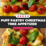 This Puff Pastry Christmas Tree Appetizer is a festive and easy-to-make treat perfect for holiday gatherings. Featuring flaky puff pastry layered with delicious pesto, melty mozzarella cheese, and fresh cherry tomatoes, this appetizer combines vibrant flavors and an eye-catching presentation. With just a handful of ingredients and multiple filling options, it’s ideal for both sweet and savory preferences and requires only 10 minutes of prep and 18 minutes of baking.