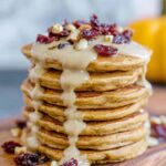 Delicious and wholesome Pumpkin Oatmeal Pancakes that combine the comforting flavors of pumpkin and warm spices with hearty oats. These pancakes are perfect for a healthy and satisfying breakfast, featuring a naturally sweetened batter with pumpkin puree, oats, and a touch of honey, topped with dried cranberries and walnuts for added texture and flavor.