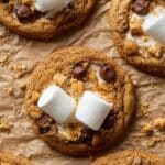 Delight in these chewy Pumpkin S’mores Cookies, a perfect autumn treat that combines the warm spices of pumpkin pie with crunchy graham cracker crumbs, semi-sweet chocolate chips, and gooey melted marshmallows on top. These large cookies offer a unique twist on classic s’mores with a seasonal pumpkin flavor, making them an irresistible dessert for fall gatherings or cozy evenings.