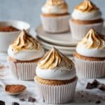Delight in these Pumpkin S’mores Cupcakes, featuring moist pumpkin-spiced cake stuffed with rich dark chocolate ganache and topped with a torch-melted meringue, delivering a perfect blend of autumn flavors and classic campfire treats in cupcake form.