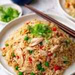 This Chicken Fried Rice recipe is a quick and flavorful dish perfect for using up leftover cooked chicken. It combines tender shredded chicken, crisp vegetables, and fluffy long-grain rice, all stir-fried together with aromatics, soy sauce, and scrambled eggs for a satisfying homemade takeout-style meal.