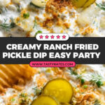 This creamy Ranch Fried Pickle Dip combines tangy dill pickles, zesty ranch seasoning, and a crispy buttery panko topping for a flavorful appetizer that’s perfect for parties. Made with cream cheese, Greek yogurt, fresh herbs, and a crunchy golden breadcrumb topping, this dip is easy to prepare ahead and pairs wonderfully with potato chips, pita chips, or crackers.