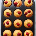 - Fill Muffin Molds: Spoon batter into each muffin mold filling halfway. Add half the raspberries over the batter in each mold, then cover berries with the remaining batter. Top each friand with the remaining raspberries to create a marbled, fruity effect.