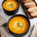 When reheating, I prefer to warm it gently on the stovetop over medium heat, stirring occasionally to keep it smooth. If the soup seems thicker than you like after reheating, just whisk in a splash of broth or water to loosen it up. Microwave works fine too—heat in short bursts, stirring in between.