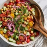 This salad pairs wonderfully with warm crusty bread or a slice of garlic naan when I want a heartier meal. If serving family style, I like throwing in a simple soup, like roasted tomato basil, alongside to cozy it up even more.