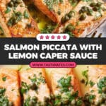 This salmon piccata pairs beautifully with simple sides like roasted asparagus, garlicky sautéed spinach, or even creamy mashed potatoes to soak up every bit of that luscious sauce.