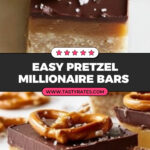 Pretzel Millionaire Bars are a decadent dessert featuring a crunchy salted pretzel crust, a rich and buttery caramel filling, and a smooth chocolate ganache topping. These sweet and salty bars offer a perfect balance of textures and flavors, making them a delightful treat for any occasion.