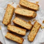 I’ve successfully frozen these cookies both before and after baking. When frozen raw dough is tough to cut, so I usually bake first, cut, and then freeze the cookies separated by parchment layers. They thaw within a couple of hours at room temperature and still taste freshly baked.