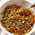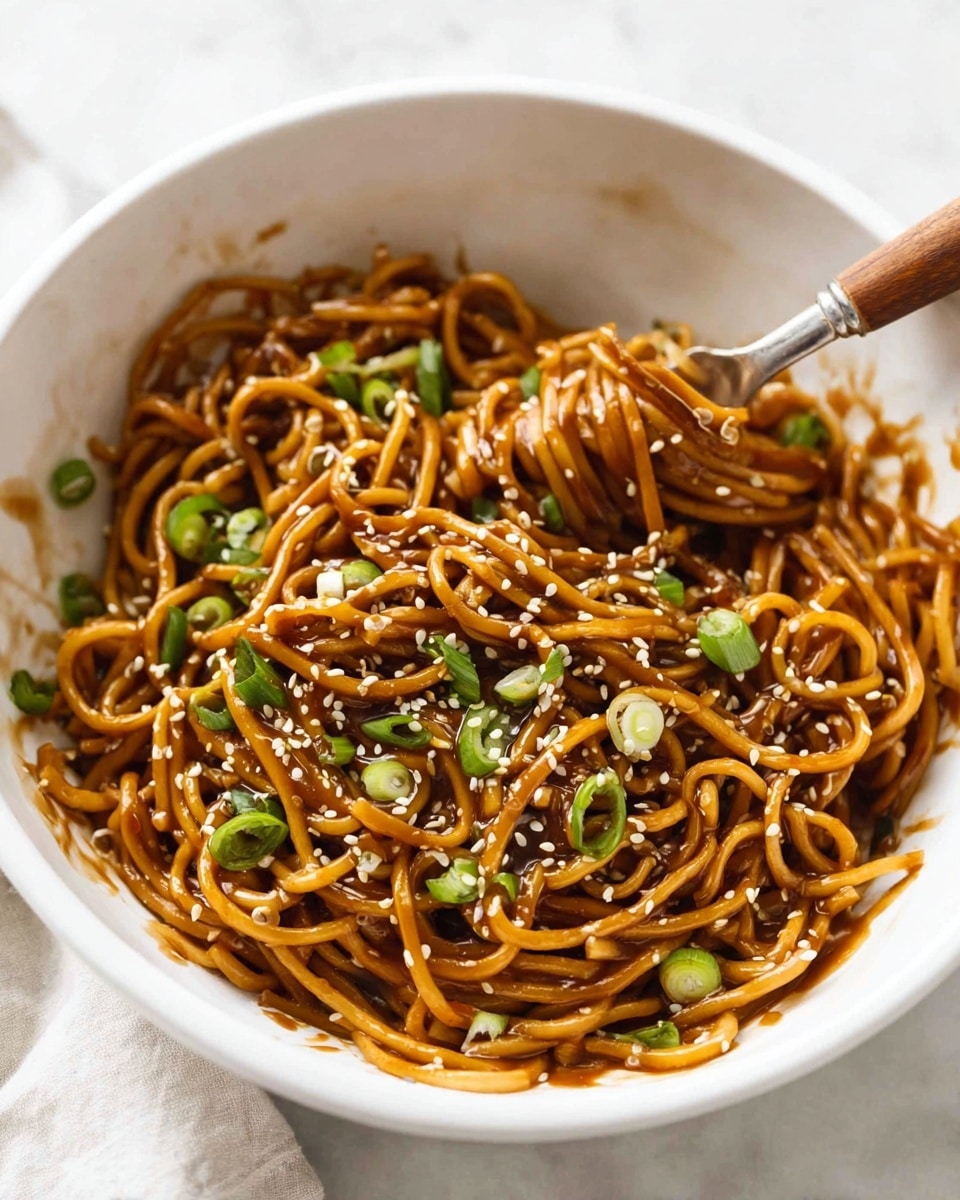 Delicious and easy-to-make Sesame Noodles tossed in a flavorful Asian sesame peanut dressing. Perfect served warm or at room temperature as a side dish or a light meal. This recipe combines fresh egg noodles with a rich blend of soy sauces, sesame oil, peanut butter, ginger, and garlic chili paste for a nutty, savory, and slightly spicy flavor.