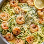 - Serve: Immediately plate the shrimp and zoodles, and sprinkle with grated Parmesan cheese if desired. Enjoy this light and flavorful meal while hot.