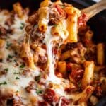 This Slow Cooker Baked Ziti is a hearty and comforting pasta dish that combines Italian sausage, a homemade tomato sauce, and tender ziti pasta, all cooked to perfection in a slow cooker. It’s an easy make-ahead meal perfect for busy days, featuring rich flavors developed over several hours of slow cooking and topped with melted mozzarella cheese.