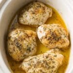 I love that this Slow Cooker Juicy Seasoned Chicken Breast Recipe is such a great base to tweak however you like. Over time, I’ve played around with the spices and even swapped in different liquids. Feel free to make it your own!