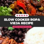 Slow Cooker Ropa Vieja is a classic Cuban dish featuring tender shredded beef cooked slowly with bell peppers, tomatoes, olives, and aromatic spices. This comforting stew is easy to prepare in a slow cooker, making it perfect for a hearty family meal served alongside rice and black beans.
