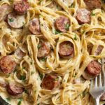 - This dish offers a creamy, spicy twist on classic Alfredo with a smoky sausage addition.