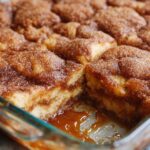 Snickerdoodle Cobbler is a delightful dessert combining soft, chewy snickerdoodle cookie dough with warm apple pie filling and a drizzle of rich caramel topping. This easy-to-make cobbler features layers of cinnamon-spiced cookie chunks and sweet apple filling, baked to a golden perfection, making it a perfect treat for cozy gatherings or a comforting dessert.