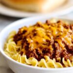 Grab a baking dish and start by spreading half of the creamy noodles on the bottom. Then layer half of the meat sauce over that, followed by a generous sprinkling of grated sharp cheddar. Repeat the layers one more time—noodles, meat, then cheese on top. Pop it in a 350°F oven for about 20 minutes, or until the cheese is melted and bubbly. Let it cool just a bit before digging in.