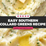 A classic recipe for Southern Collard Greens featuring tender greens simmered with smoked turkey, onion, garlic, and a flavorful mix of spices and vinegars. This dish is a traditional Southern favorite, offering a perfect balance of smoky, tangy, and spicy flavors that make it a comforting and hearty side.