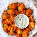 - Serve: Serve the spicy Buffalo Cauliflower Bites hot with ranch or blue cheese dressing on the side, accompanied by fresh carrot and celery sticks for a classic and tasty pairing.