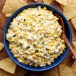 - Serve: Transfer the hot Mexican corn dip into a serving bowl. Sprinkle with freshly grated or crumbled Cotija cheese and chopped cilantro on top. Serve warm with plenty of tortilla chips for scooping. Enjoy!