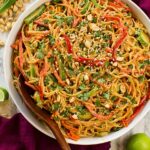 - Finish with toppings and serve: Sprinkle the chopped roasted peanuts on top for crunch and garnish with sesame seeds if desired. Serve immediately and enjoy a fresh, spicy Thai noodle dish bursting with color and taste.
