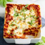 This lasagna freezes beautifully. Just assemble in a freezer-safe dish, cover tightly with foil, and freeze before baking. When you’re ready to eat, thaw overnight in the fridge and bake as directed—just add a few extra minutes since it starts chilled.