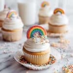 - Frost the Cupcakes: Using a spatula or piping bag, generously frost each cooled cupcake with the rainbow candy buttercream until fully covered.