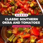 - Stewed Okra and Tomatoes is a classic Southern dish famous for its savory bacon, tangy tomatoes, and tender okra combination.