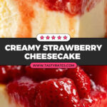 This Strawberry Cheesecake features a buttery biscuit crust and a creamy, light yet rich cream cheese filling. Topped with a luscious homemade strawberry sauce that perfectly complements the smooth cheesecake, this dessert is a delightful treat for any occasion. The recipe balances sweet and tangy flavors, offering a luscious texture that is not as dense as classic New York cheesecake.