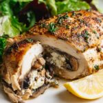 Delicious stuffed chicken breasts filled with a savory mixture of sautéed mushrooms, fresh herbs, and creamy goat cheese, then roasted to juicy perfection with crispy skin. This elegant yet easy recipe is perfect for a comforting weeknight dinner or special occasion.
