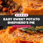This Sweet Potato Shepherd’s Pie is a hearty, wholesome twist on a classic comfort dish, featuring a savory ground beef or lamb filling with vegetables, topped with creamy mashed sweet potatoes. Perfectly balanced with spices and herbs, it’s baked to golden perfection for a nutritious, satisfying meal that’s ideal for family dinners or meal prep.