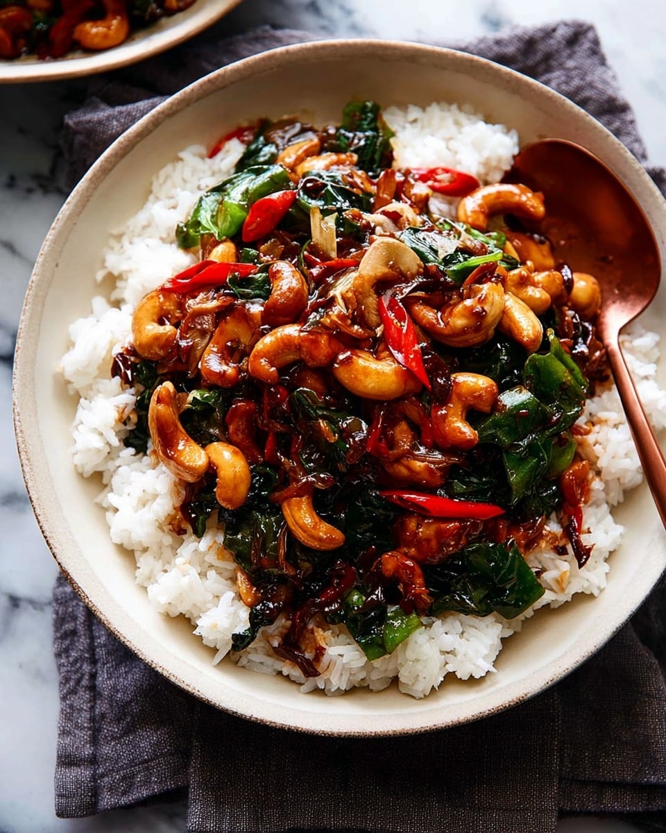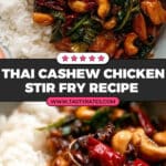 For dinner parties or special occasions, I’ve served this Thai Cashew Chicken Stir Fry Recipe in pineapple bowls—it looks gorgeous and adds a subtle tropical aroma. Another fun idea is to serve it over coconut rice to add a creamy sweetness that plays wonderfully against the savory sauce.