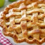 - Bake Pie: Place the pie in the center of a preheated oven at 425°F (220°C) and bake for 15 minutes. Then reduce the oven temperature to 350°F (175°C) and continue baking for an additional 45 minutes. Bake until the apples are soft and the filling is bubbling through the lattice vents for at least 5 minutes.