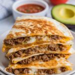 These Tik Tok Famous Taco Quesadillas are a flavorful and fun twist on traditional quesadillas, featuring four distinct quadrants filled with refried beans, seasoned taco meat, creamy avocado, and melty cheese, all folded into a crispy, buttery tortilla triangle. Perfect for a quick dinner or snack that packs a punch of Mexican-inspired flavors.