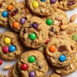 Deliciously soft and chewy Trail Mix Cookies packed with peanut butter, oats, chocolate chips, M&M’s, almonds, and roasted peanuts. These cookies are sweetened with brown sugar and honey, offering a delightful blend of textures and flavors perfect for snacking or as a treat.