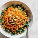 Absolutely! While sweet potato noodles add a unique texture and flavor, you can swap in your favorite cooked pasta if you prefer. Just toss it with turmeric, spinach, chickpeas, and pistachios for a similar taste profile.