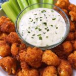 - Serve: Serve the cauliflower buffalo wings hot with the chilled dairy-free ranch dressing for dipping. Enjoy immediately as a flavorful, crispy snack.