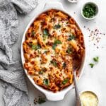 I’ve frozen this pasta bake both before and after baking. To freeze uncooked, layer it in a freezer-safe dish, cover tightly, and bake straight from frozen—just add extra baking time. Freezing leftovers works great too, just portion into freezer bags or containers.