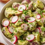 - Chill and Serve: Cover the bowl with plastic wrap or a lid and refrigerate the potato salad for at least 1 hour to allow the flavors to meld. Before serving, garnish the salad with sliced radishes and additional fresh parsley sprigs for a crisp, colorful finish.