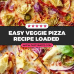 This Vegetarian Pizza is a vibrant, cheese-loaded delight featuring a perfectly crisp crust topped with a blend of mozzarella, Asiago, and pecorino cheeses, complemented by tangy pizza sauce and an array of fresh vegetarian toppings including roasted red peppers, artichokes, red onion, jalapeño, and fresh basil. Baked at high heat for a golden crust and melty cheese, this pizza is an easy and crowd-pleasing meal perfect for pizza night.