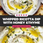 Transfer the whipped ricotta into a serving bowl and drizzle generously with honey—this sweet contrast is what makes the dip sing. Sprinkle fresh thyme leaves and a pinch of black pepper on top. If you love a little brightness, add some fresh lemon zest; I find it really elevates the flavors. Serve immediately with your favorite dippers like crusty bread, pita chips, or fresh veggies. This step is where you get to play with presentation, so have fun!