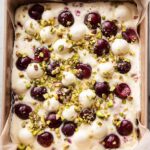 - Top with Reserved Ingredients: Decorate the top with the reserved glacé cherries and sprinkle the chopped pistachios over them.